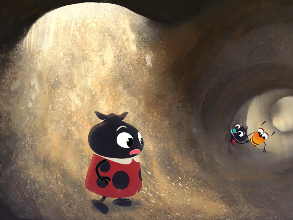 Bror og Marie går på tur i sandkassen, men vinden udvisker deres fodspor, og pludselig kan de ikke finde vejen hjem…
