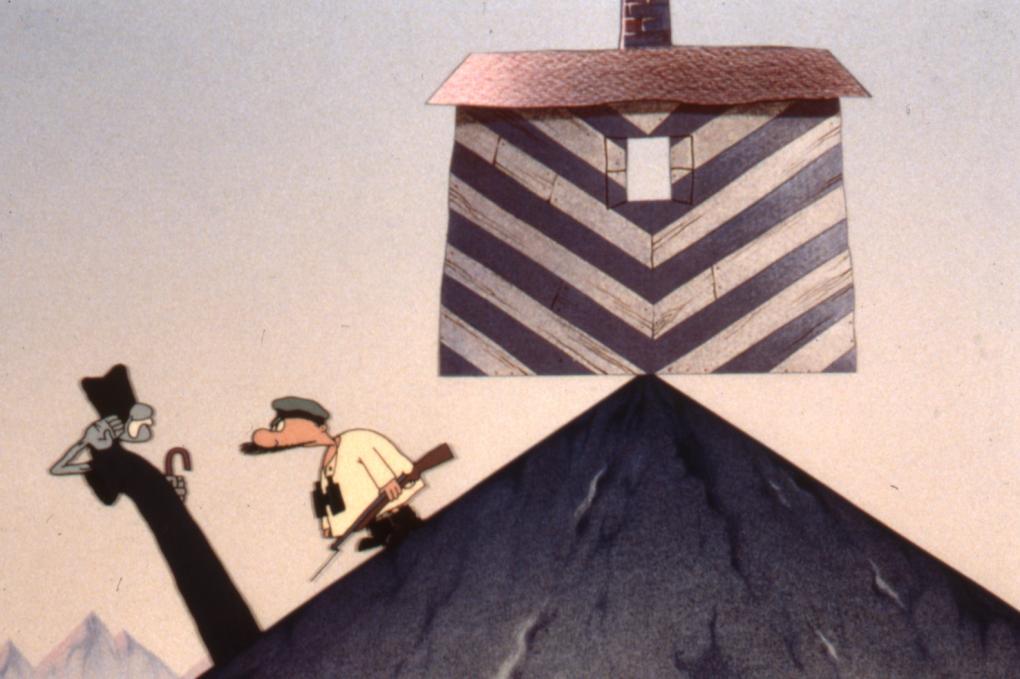 Huset i 'Huset ved verdens ende' ligger på toppen af et bjerg og er befolket af en ko, en kat, en kælling og adskillige andre underholdende væsener. Det eneste problem er, at huset, med den placering, vipper dramatisk, hver gang nogen går ud eller ind. Og det gør der tit.
