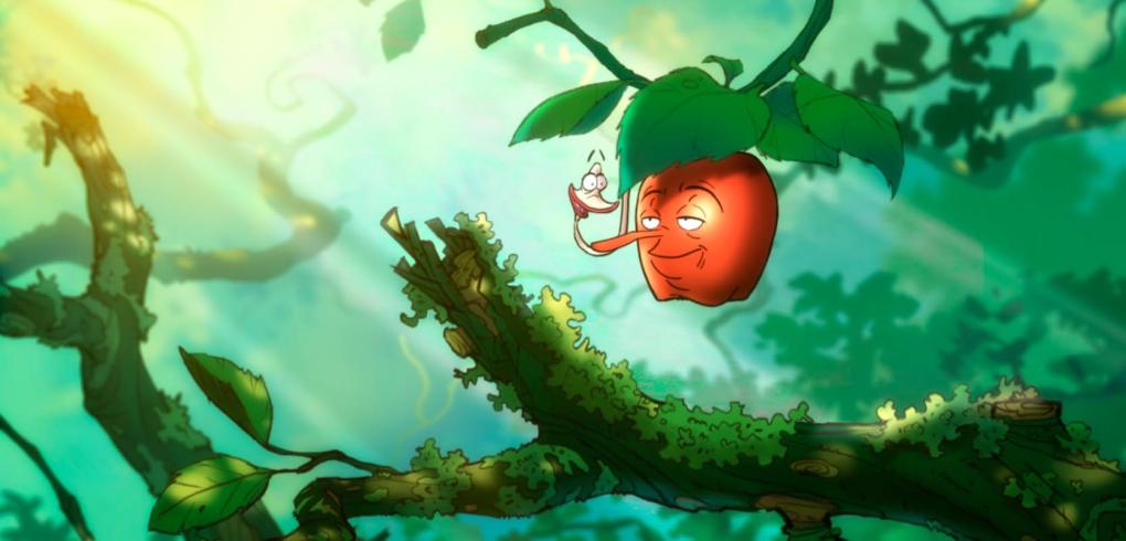 I "Æblet og ormen" er Torben et struttende blankskinnende æble med en drøm: At blive udstillingsæble i frugtafdelingens strålende rampelys. Livsdrømmen knuses, da en orm en solskinsmorgen stikker sit hoved ud gennem Torbens blanke skind. De panikslagne æbler i træet ryster Torben ned. Sammen med æblevennen Newton må han udføre en halsbrækkende plan for at slippe af med ormen, som for resten hedder Silvia og faktisk er ret flink.