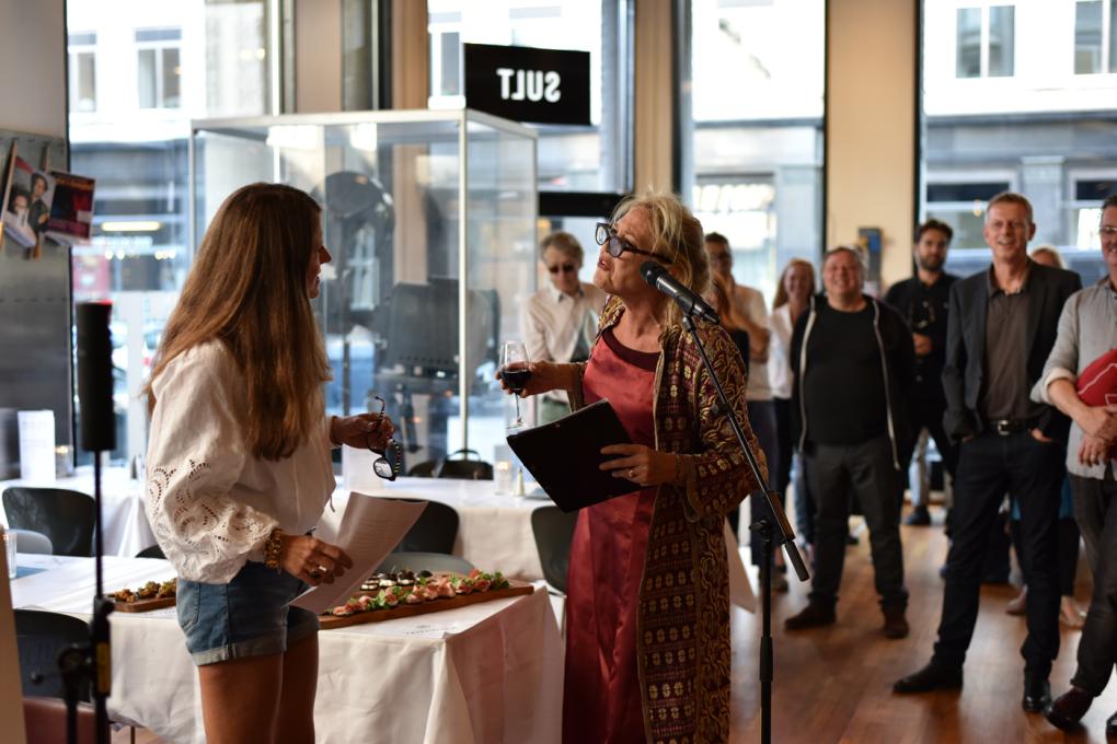 "God eftermiddag, hvor har jeg bare glædet mig til at stå her og kigge på alle jer skønne skabninger. Mit navn er Lotte Svendsen, og jeg er den nye Børne- og ungdomsfilmkonsulent. Jeg kommer til at sidde oppe på 2. sal hver dag mellem 9 og 16. Det hedder fast arbejde, det har jeg aldrig prøvet før, ja jeg kniber mig faktisk stadig i armen. Men mit navn det står altså på døren, så nu må i komme springende. Jeg ved selvfølgelig godt, at der er en rimelig stringent ansøgningsform her i huset, men det må ikke holde jer tilbage for at tage fat i mig. Jeg vil rigtig gerne høre jeres tanker også før de er færdigtænkt. Og hvis de slet ikke er tænkt endnu, så vil jeg gøre hvad jeg kan for at inspirere jer til at se lidt på livet i frøperspektiv.