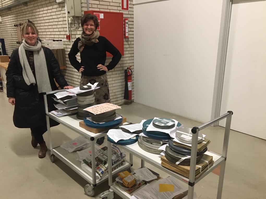 Filminstituttets medarbejdere, filmarkivar Katrine Madsbjerg og redaktør Lisbeth Richter Larsen, med de nordjyske film, der skal digitaliseres i filmarkivet i Glostrup. Foto: DFI
