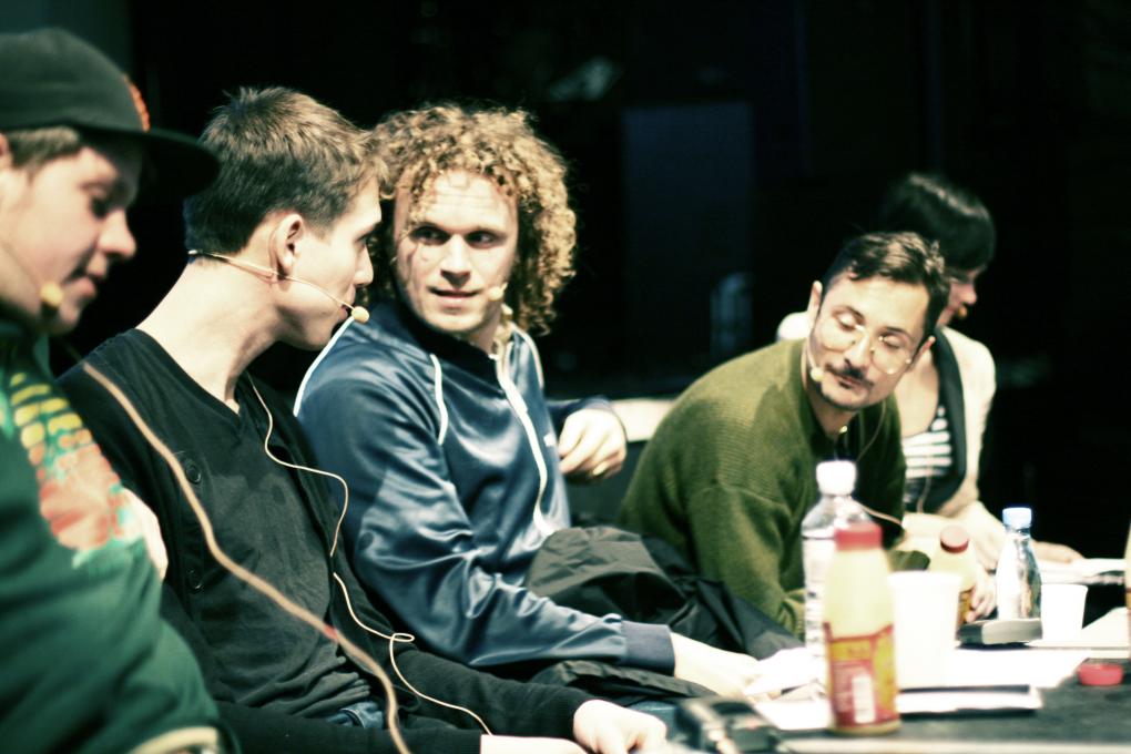 Tilhørernes øjne er rettet mod instruktørerne Daniel Kragh-Jacobsen og Emil Næsby Hansen og deres tre konsulenter Philip Einstein Lipski, Michael Noer og Martin de Thura.