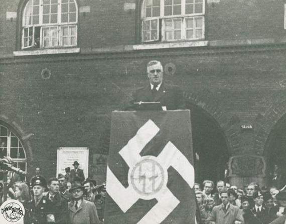 'Danmark i Lænker' lægger ud med tyskerne, der bryder ikke-angrebspagten med Danmark, og overfalder landet. Flere steder kommer det til tapper kamp, ved flyvestationen i Værløse og i Sønderjylland, hvor der ’overalt vistes en fast og værdig holdning, et mod og en disciplin, der var en hæder for landets ungdom.’ Kort efter følger en sekvens, hvor de faldne sønderjyske helte begraves, og Gunnar Nu-Hansen proklamerer, at ’den danske soldats mod og pligtfølelse vil altid lyse over deres grave’. Selvom mange sikkert kunne være enige, så var det snarere skamfølelse og forbitrelse over Stauning-regeringens nølen i tiden op til invasionen og den lethed, hvormed tyskerne indtog landet, der var den dominerende følelse blandt danskerne i april 1940. (…)